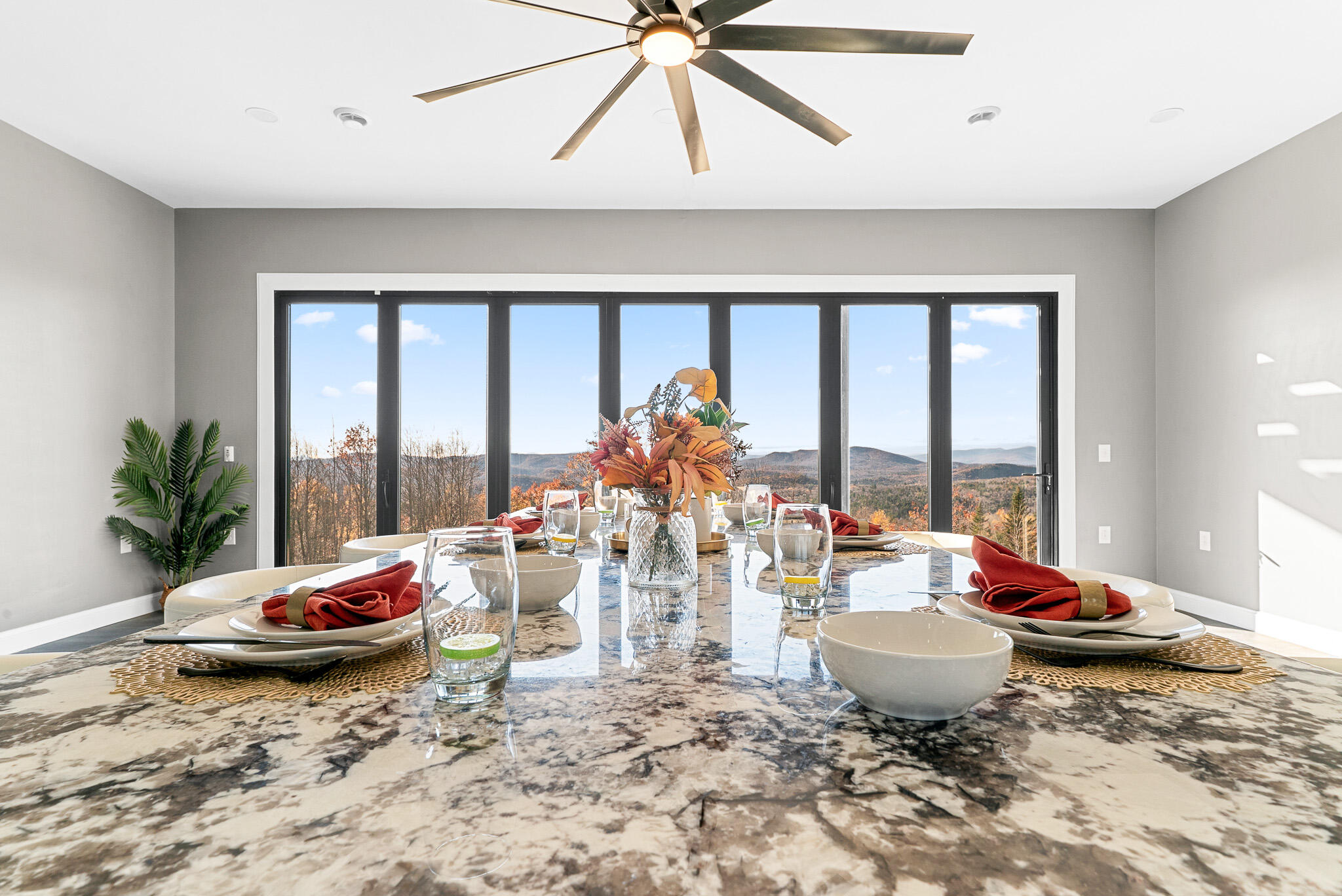 Welcome to Serenity Ridge, the first estate in the exclusive Summit Sanctuary collection by Bolduc Family Properties LLC. Nearly completed brand new construction, this legacy home is perched atop a peaceful mountain ridge, offering refined, luxury living with breathtaking views & an unmatched connection to nature. Entry through gated granite pillars, winding past native evergreens, bubbling brook, a tranquil pond. Outdoor living shines with fieldstone patios, propane firepit, options for a chef's kitchen/pavilion. Heated 2-car garage features a mirrored smart door, EV charger, ski gear storage, and pet wash station. Inside, grand rooms boast soaring 10'+ ceilings, radiant heated floors, and folding glass walls that seamlessly merge indoors with outside. First level gourmet kitchen is a chef's dream w/Delicatus Ice granite, Z-Line dual-fuel appliances & 9.5' peninsula perfect for gatherings. Formal dining & seating areas are set against the soothing backdrop of a Zen water wall. Built-in granite benches & dramatic lighting create an elegant, serene ambiance. Each private bedroom features spa-like en-suites, folding glass walls open to steel ''forever balconies,'' & serene valley views. Private laundry, walk-in closets & solid-core doors ensuring quiet privacy. Entertainment Wing includes, state-of-the-art theater w/100'' screen, fireplace, granite bar. Nearby a full gourmet butler's kitchen w/top of the line & smart finishes. A third kitchen boasts Hibachi-style grill, prep station, massive peninsula w/waterfall of granite that comfortably seats large parties. Smart home system, color change mood lighting, & a top-floor living room area w/100''TV & fireplace elevate every gathering. Additional highlights include: top-floor bonus room w/access to full bath, barn-board metal roof, Generac generator, security system & much more. Customizable and built to endure, Serenity Ridge is more than a home--it's a sanctuary designed to be treasured for generations.