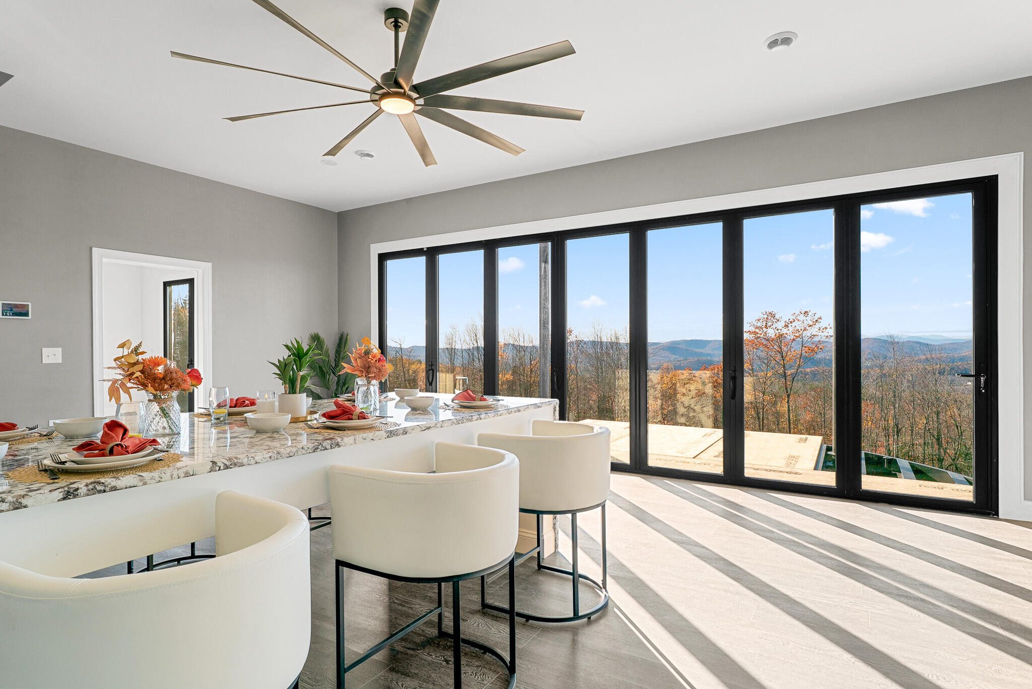 Back on market due to buyer's inability to complete the transaction,no fault of home or seller.Rare second opportunity to secure Serenity Ridge,the flagship estate of the Summit Sanctuary Collection by Bolduc Family Properties LLC.Ready for occupancy,this extraordinary new construction residence offers refined luxury living with breathtaking panoramic mountain views & a rare connection to the surrounding natural landscape.Located in a subdivision with no formal HOA & AirBNB approved.A scenic approach winds past native evergreens,a bubbling brook,& a tranquil pond creating an immediate sense of privacy & retreat.Outdoor living areas are designed to embrace the setting with opportunities for landscaping,fire pit,patio,gazebo,or chef's outdoor kitchen for elevated entertaining.Inside,soaring 10'+ ceilings,radiant heated floors,& dramatic folding glass walls blend indoor & outdoor living.The lower level features two private bedrooms with spa-inspired en-suite baths & a gourmet kitchen with Delicatus Ice granite,premium Z-Line dual-fuel appliances,& a striking 9.5' peninsula ideal for gatherings or potential in-law suite use.Formal dining & seating areas are complemented by a Zen-inspired water wall,granite benches,& dramatic lighting.Upper level bedrooms offer spa-style baths,walk-in closets,private laundry,& folding glass walls opening to custom forged steel balconies overlooking the valley.The entertainment wing includes a theater with 100' screen,fireplace,& granite bar with a gourmet butler's kitchen.A third kitchen features a Hibachi-style grill,prep station,& waterfall granite peninsula for large gatherings.Smart home technology,color-changing mood lighting,& a top-floor living area with 100' TV & fireplace enhance everyday living.Additional features include a bonus office or guest room with full bath access,barn-board metal roof,wired security system,& options for a generator,detached 3+ car park or helipad.Serenity Ridge,where silence speaks volumes.